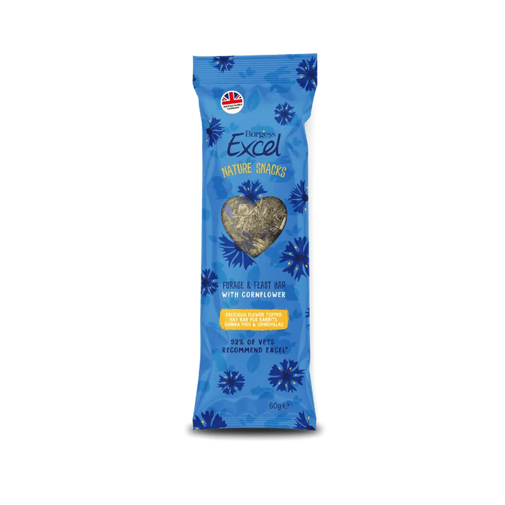 The Burgess Excel Forage & Feast Bar with Cornflower is a premium treat designed for small pets like rabbits, guinea pigs, and chinchillas. It combines natural ingredients with a focus on enrichment and health.