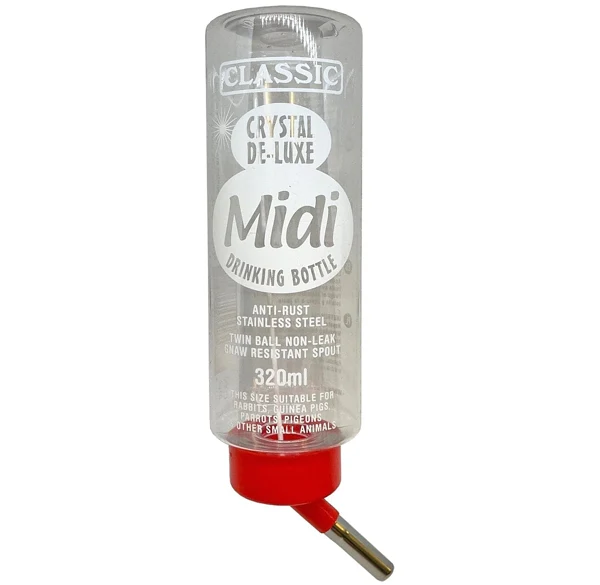 This Classic – Crystal De-luxe Drinking Bottle is the perfect size for small animals like rabbits, guinea pigs, parrots, and pigeons. Its leak-proof design ensures a steady water supply, and its rounded base prevents spillage.