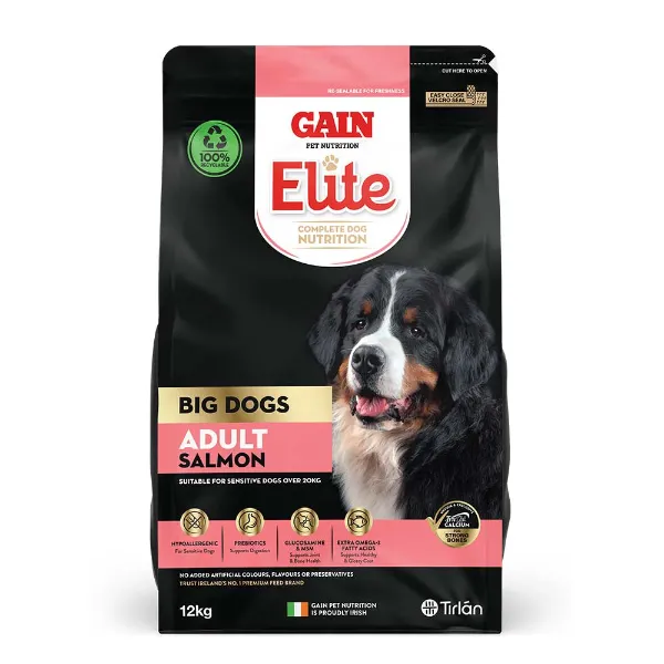 GAIN Elite Big Dogs Adult Salmon is a complete pet food for dogs over 20kg. Research has revealed that big and small dogs have different nutritional requirements, leading GAIN Pet Nutrition to develop two specific food ranges, GAIN Elite Big Dogs and GAIN Elite Small Dogs