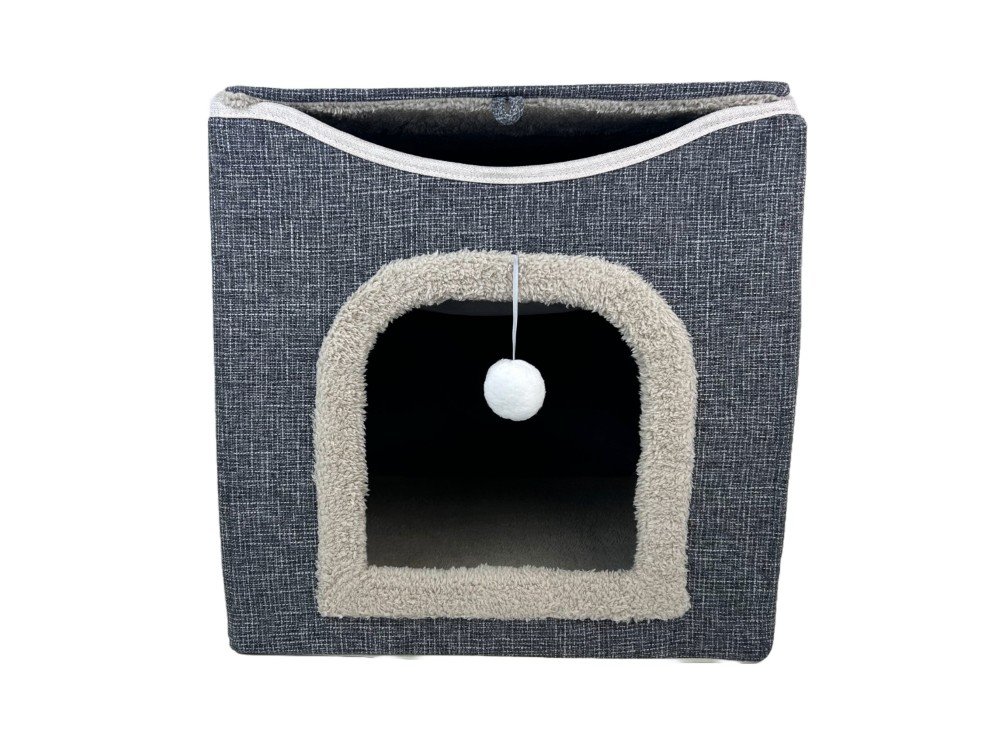 A soft, cosy house for your pet, with a solid roof – allowing for 2 comfortable places for your pet to lounge! Complete with a removable pillow.