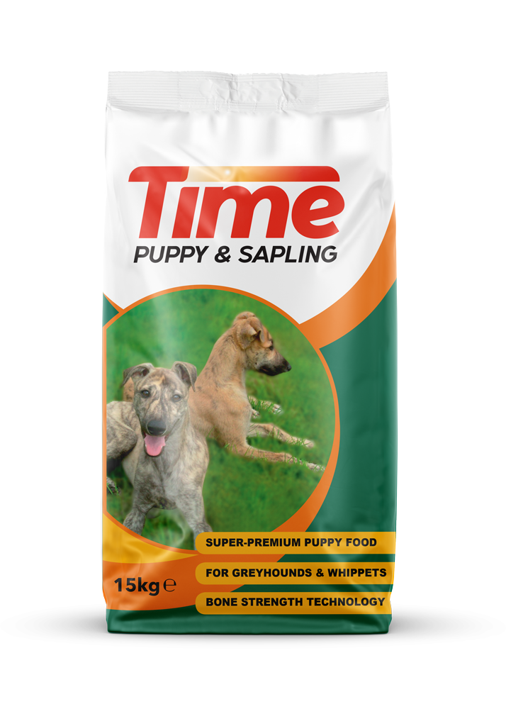 Time Puppy & Sapling is a complete food for greyhound and whippet pups and for breeding bitches. It is a super-premium, hypoallergenic, nutrient-rich diet.