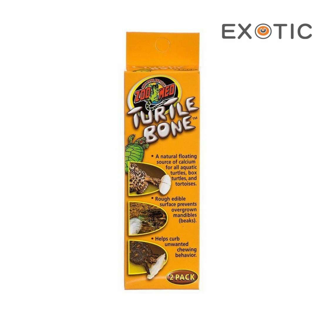 Turtle Bone™ is a natural floating source of calcium for all species of aquatic and terrestrial turtles and tortoises. Turtle Bone™ provides habitat enrichment and supplementary calcium on an “as needed” basis, and the rough edible surface helps prevent overgrown beaks as well as curb unwanted chewing behavior.